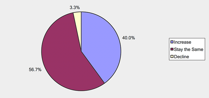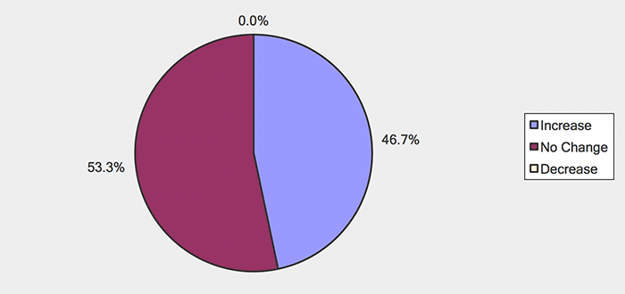 Over the next six months, will your company increase or decrease spending on business development activities?