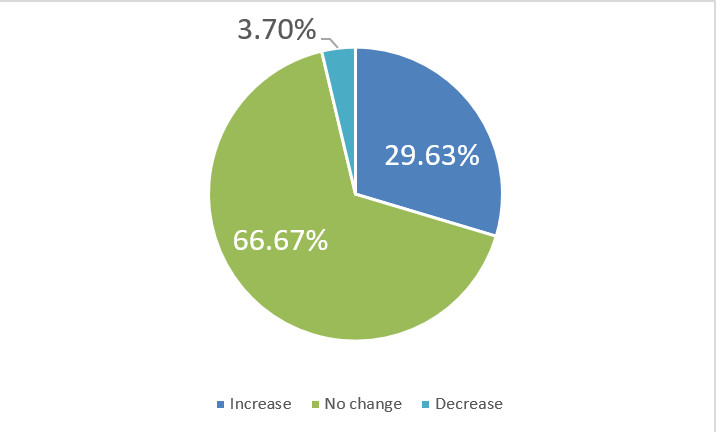 Over the next six months, will your company increase or decrease spending on business development activities?