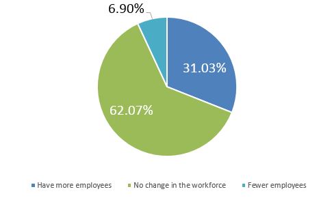 Over the course of the next few months, will your company be hiring more employees, fewer employees, or making no change in the workforce?