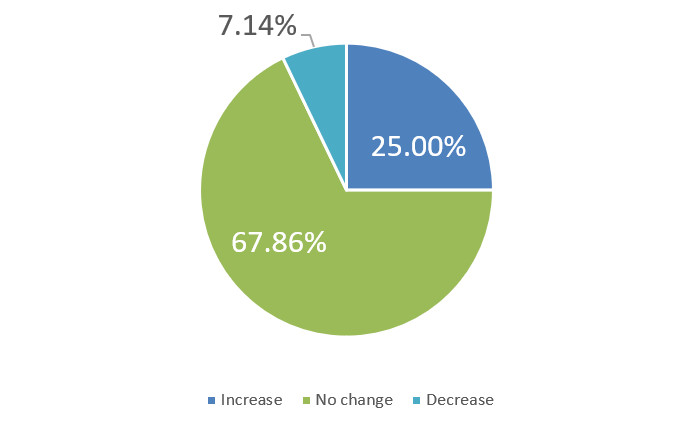 Over the next six months, will your company increase or decrease spending on business development activities?