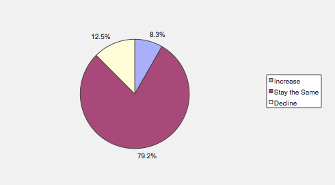 Over the next six months, will your company increase or decrease spending on business development activities?