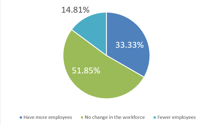 Over the course of the next few months, will your company be hiring more employees, fewer employees, or making no change in the workforce?