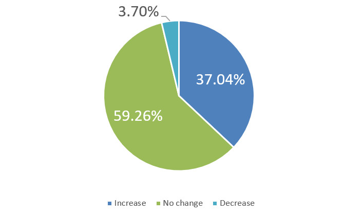 Over the next six months, will your company increase or decrease spending on business development activities?