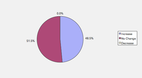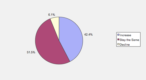 Over the next six months, will your company increase or decrease spending on business development activities?