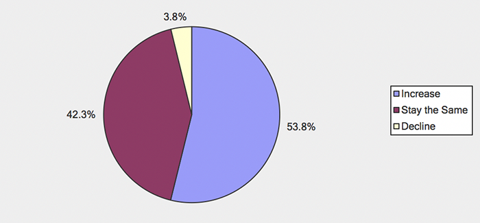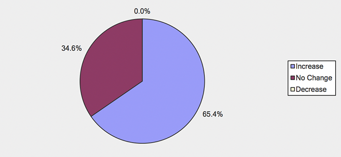 Over the next six months, will your company increase or decrease spending on business development activities?