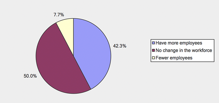 Over the course of the next few months, will your company be hiring more employees, fewer employees, or making no change in the workforce?