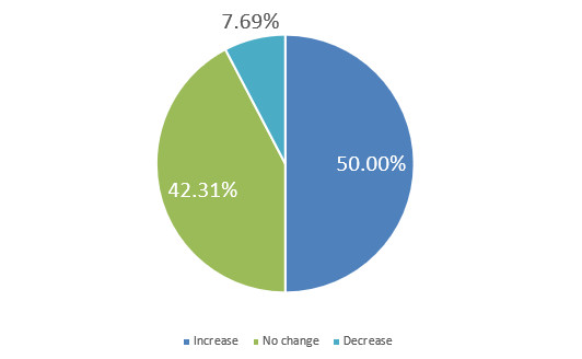 Over the next six months, will your company increase or decrease spending on business development activities?