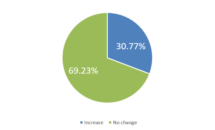 Over the next six months, will your company increase or decrease spending on business development activities?