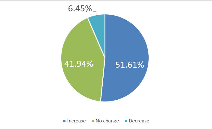 Over the next six months, will your company increase or decrease spending on business development activities?