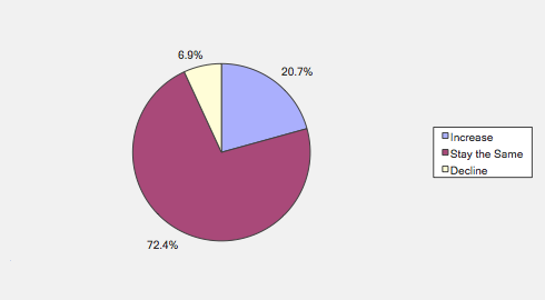 Over the next six months, will your company increase or decrease spending on business development activities?