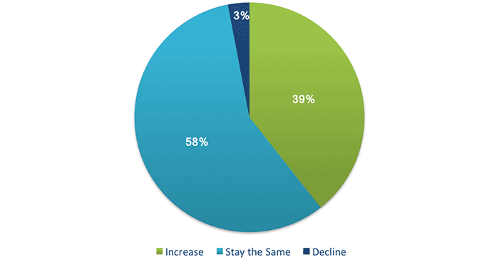Over the next six months, will your company increase or decrease spending on business development activities?