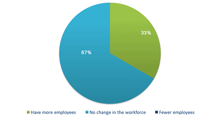 Over the course of the next few months, will your company be hiring more employees, fewer employees, or making no change in the workforce?