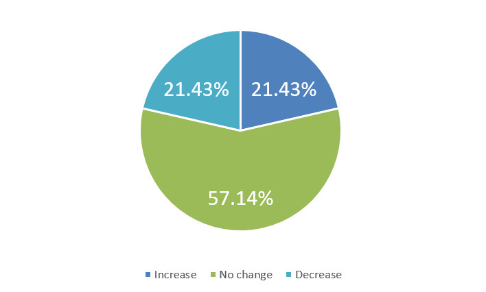 Over the next six months, will your company increase or decrease spending on business development activities?