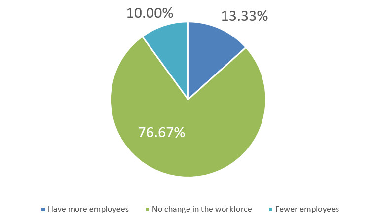Over the course of the next few months, will your company be hiring more employees, fewer employees, or making no change in the workforce?