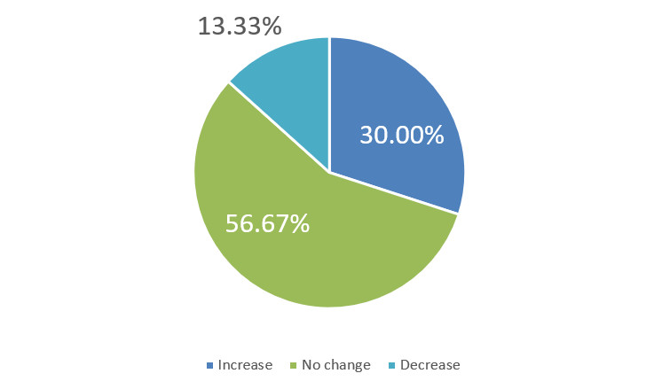 Over the next six months, will your company increase or decrease spending on business development activities?