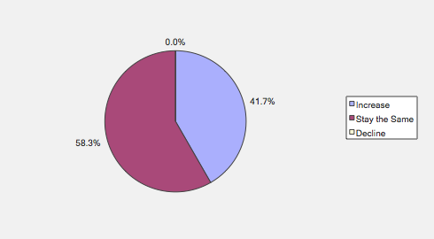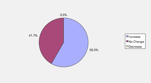 Over the next six months, will your company increase or decrease spending on business development activities?