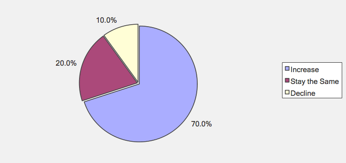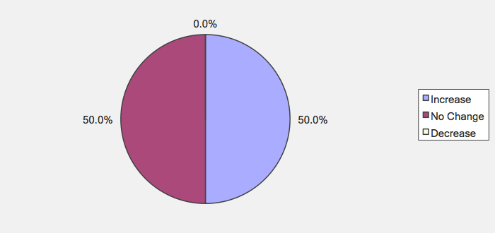 Over the next six months, will your company increase or decrease spending on business development activities?