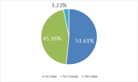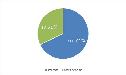 Over the next six months, will your company increase or decrease spending on business development activities?