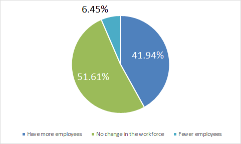 Over the course of the next few months, will your company be hiring more employees, fewer employees, or making no change in the workforce?