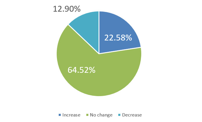 Over the next six months, will your company increase or decrease spending on business development activities?