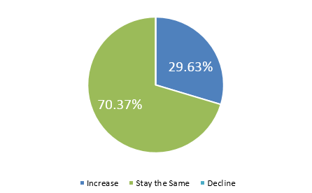 Over the next six months, will your company increase or decrease spending on business development activities?
