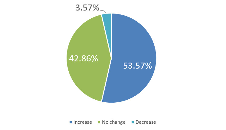 Over the next six months, will your company increase or decrease spending on business development activities?
