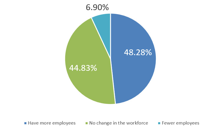Over the course of the next few months, will your company be hiring more employees, fewer employees, or making no change in the workforce?