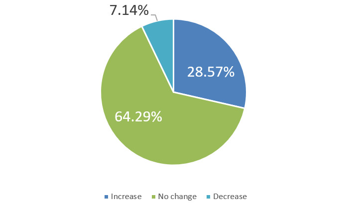Over the next six months, will your company increase or decrease spending on business development activities?