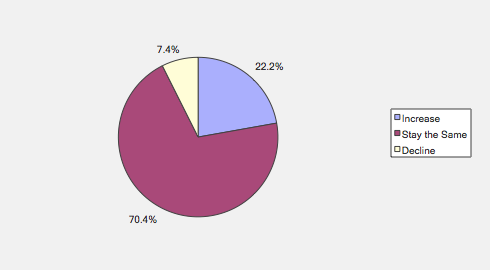 Over the next six months, will your company increase or decrease spending on business development activities?