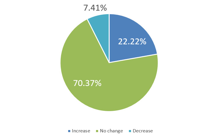 Over the next six months, will your company increase or decrease spending on business development activities?