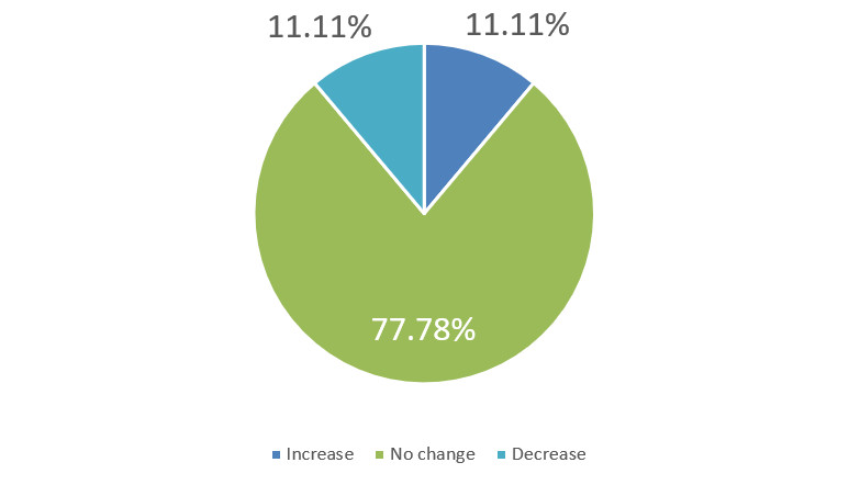 Over the next six months, will your company increase or decrease spending on business development activities?