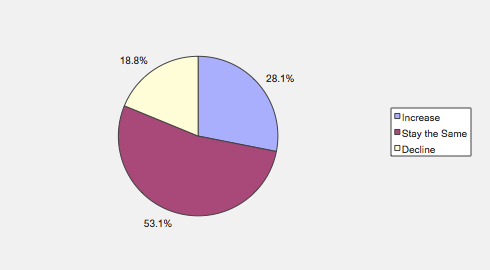 Over the next six months, will your company increase or decrease spending on business development activities?