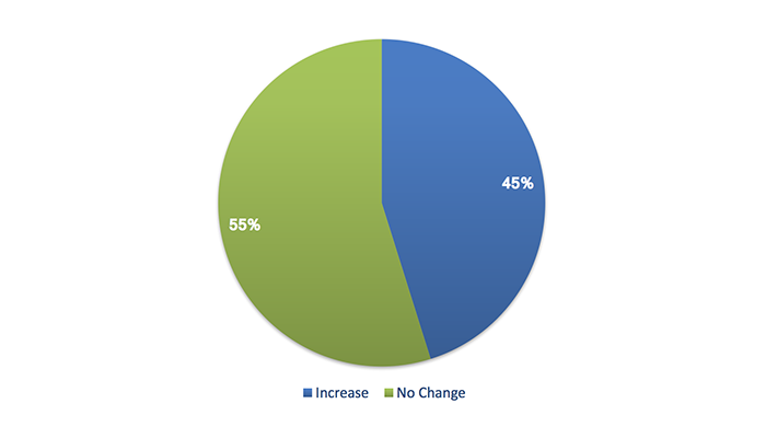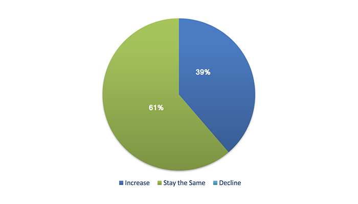 Over the next six months, will your company increase or decrease spending on business development activities?