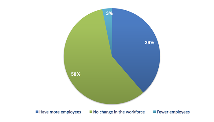 Over the course of the next few months, will your company be hiring more employees, fewer employees, or making no change in the workforce?