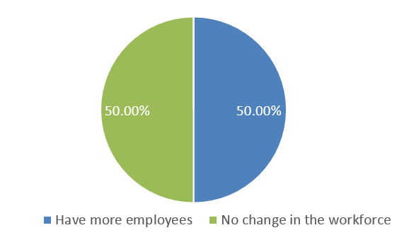 Over the course of the next few months, will your company be hiring more employees, fewer employees, or making no change in the workforce?