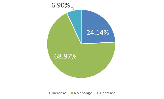 Over the next six months, will your company increase or decrease spending on business development activities?